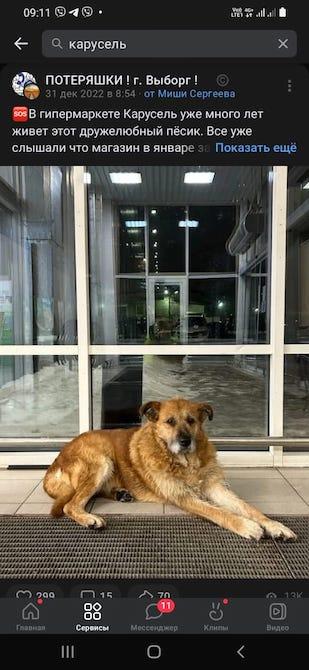 Grisha on asunut vuosia kodittomana Viipurissa suomalaisillekin tutun Karusel-marketin seutuvilla, missä ihmiset ovat sitä ruokkineet. Sympaattinen koiraherra tuli paikallisille vuosien mittaan tutuksi.