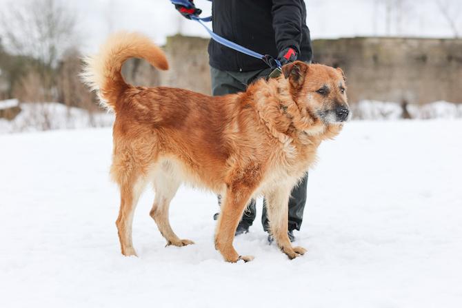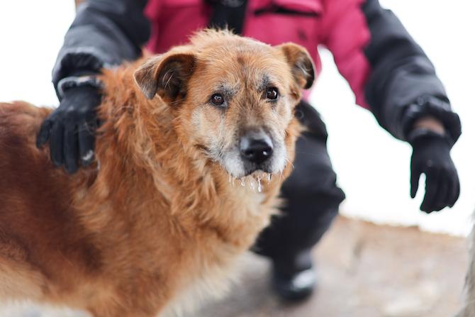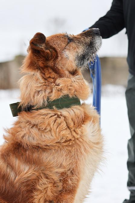 Grisha lähtee innoissaan mukaamme, kun napsautamme hihnan kiinni sen pantaan. Se nauttii kävelystä, käy nostamassa jalkaa muutaman kerran ja ruopii tarmokkaaasti lunta päälle. Sitten se heittäytyy hankeen piehtaroimaan. Puhdas lumikylpy tekee niin hyvää. Yhtäkkiä Grisha terästäytyy: kauempana kulkee irrallaan oleva uroskoira. Grisha seurailee sen liikkeitä valmiina reagoimaan – onhan se tottunut pitämään huolta itsestään ja joutunut kenties puolustamaan muilta koirilta.