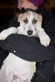 Iloinen Moana on ystävällinen ja persoonallisen näköinen pentu. Moana odottaa kolealla Irinan tarhalla oman kodin löytymistä.