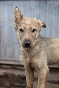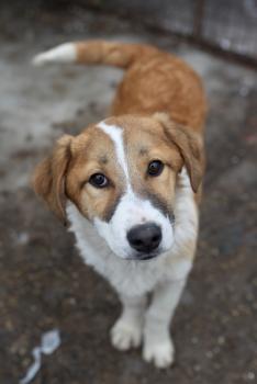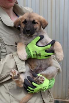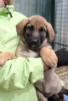 Vieraat ihmiset vielä ujostuttaa Medaa ja se katselee tulijoita turvallisesta sopukasta muiden pentujen lomasta. Mistä tyttö löytäisi sitoutuneen ihmisen?