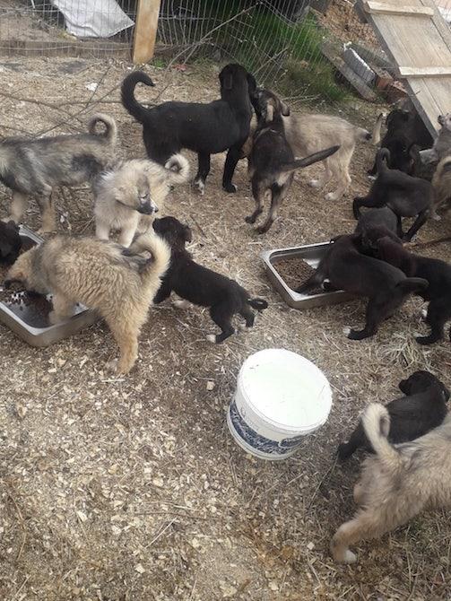 Nämä pennut asuvat Marian ja Alexanderin luona kunnes niiden rokotukset ovat astuneet voimaan ja on aika muuttaa Irinan tarhalle. Pentuja on tällä hetkellä yhteensä 21. (Kuva: Maria K.)