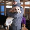 Sylissä oleminen oli Aatosta kovin jännittävää, mutta rauhallisesti Aatto selvisi siitäkin. Kun se pääsi taas aitaukseen juoksentelemaan, tuli se saman tien hyppimään taas vasten. Ei se sylissä oleminen niin kamalaa tainnut siitä ollakaan. Aatto tulee hienosti toimeen aitauksen muiden pentujen kanssa. Peuhaaminen yhdessä onkin sen mielestä melkoisen hauskaa!