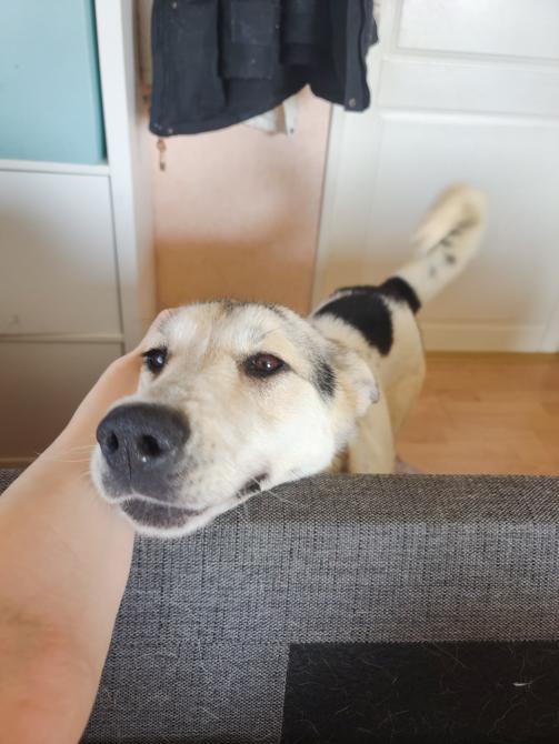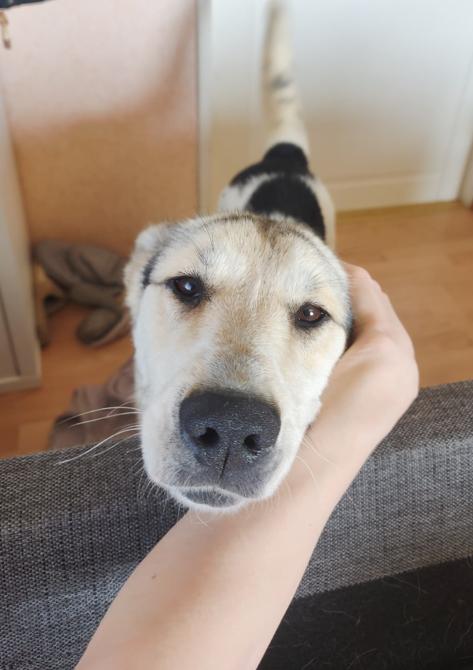 Aiko pääsi Suomeen ruokakippojen ääreen hoitopaikkaan Pohjois-Savoon. Se on osoittautunut valmiiksi kotikoiraksi, on mm. sisäsiisti ja pärjää kissataloudessa.