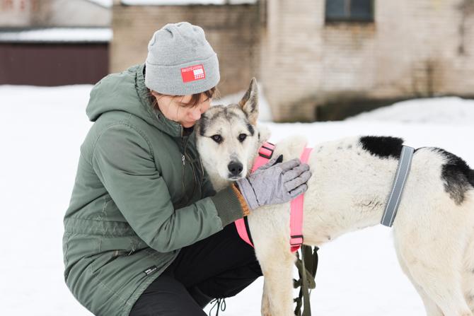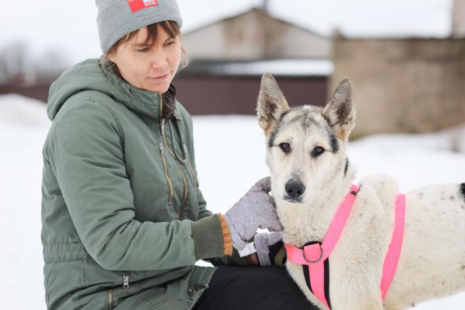 Aiko on peräisin Ryabovon kylästä. Se otettiin ulkoa kiinni osana catch-neuter-release -ohjelmaa ja tuotiin steriloitavaksi tarhalle. Aiko oli tuotaessa tiineenä ja hyvin laihassa kunnossa. Häkissä tarhan klinikkarakennuksessa häntäänsä ihmisille heilutteli ystävällinen tyttö, eikä Snezhanna kestänyt ajatusta että se pitäisi palauttaa löytöpaikkaansa, ulos kadulle. Aiko sai jäädä tarhalle asumaan ja toivomme, että ihmisrakas tyttö ei joudu jäämään sinne pidemmäksi aikaa.