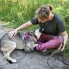 Tapasimme Ainan tarhalla elokuussa, jolloin se aitauskavereineen pääsi kävelylle kanssamme. Aina antoi itsestään todella liikuttavan ja ihmisrakkaan vaikutelman. Hiukan sitä kuitenkin jännitti sekalaisessa koira- ja ihmisseurassa. Hihnassa käveleminenkin oli hiukan hakusessa, mutta lähti kuitenkin sujumaan ihan hyvin.