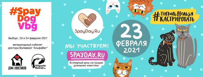 Viipurin AlphaVet-klinikalla järjestetty kaksipäiväinen #SpayDogVbg-tempaus oli onnistunut. Osallistuimme yhdessä klinikan ja Dom Hvostikov -tarhan kanssa kansainväliseen SpayDay-sterilisointitapahtumaan. Vähävaraisille viipurilaisille tarjottiin mahdollisuus kissansa tai koiransa leikkauttamiseen maksutta niin, että Viipurin Koirat ry maksoi lääkkeet ja tarvikkeet suomalaisten lahjoittajien tuella.