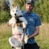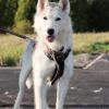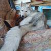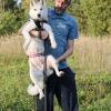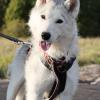Amalia pääsee kanssamme ulkoilemaan syyskuun alussa ja menohaluja tällä nuorella tytöllä onkin melkoisesti. Toisiaan seuraavat samanlaiset päivät vailla liikuntaa saavat koiran kuin koiran kierroksille, joten ei ole ihme että hihna on kireällä ja edessä näkyy villisti hulmuavat villapöksyt. Pieni aitaus toimii lähinnä säilöpaikkana eikä sieltä pääse jaloittelemaan kuin harvoin. Ihmisiin Amalia suhtautuu hyvin ystävällisesti, myös mieheen, ja onkin selvää että Amalialla on taustaa ihmisten parissa elämisestä. Se on hyvin tottunut käsittelyyn eikä tunnu pelkäävän mitään.