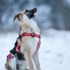 Oletettuja sisaruksia on yhteensä neljä, kaksi poikaa ja kaksi tyttöä. Tytöt, Amalia ja Anastasia, saapuivat tarhalle marraskuun puolivälin jälkeen. Tapasimme nämä ihanat ja melkoisen identtiset sisarukset joulukuun alussa, jolloin ne pääsivät myös hihnakävelylle kanssamme. Tytöt ovat varmasti olleet ihmisten kanssa tekemisissä aiemminkin, sillä molemmat olivat reippaita eivätkä arastelleet mukana ollutta miestäkään. Hihnassa kävely oli niille selvästi vielä uutta ja poukkoilevaa, mutta ihan hyvin se alkoi sujumaan. Anastasialla riitti menohaluja, pitipä välillä tehdä pieni kuperkeikkakin lumisessa maassa, mutta hienosti sujui myös istuminen ja kontaktin ottaminen taluttajaan: peppu kiinni maahan ja tiivis tapitus.