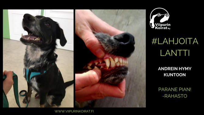 Auttaisitko meitä korjaamaan Andrein hymyn kuntoon? #lahjoitalantti Parane pian! -rahastoon ja haasta myös ystäväsi mukaan talkoisiin Viipurin kodittomien koirien hyvinvoinnin hyväksi!