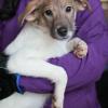 Eihän sitä nyt pelkkään olemiseen pysty pieni pentu keskittymään, kun vihdoin on saatu ihminen luokse. Annikki ei haluaisi muuta kuin läheisyyttä ja huomiota, ympäristöstä viis. Hihnassa tyttö on ensimmäistä kertaa eikä se nyt niin kauhealta näytä tuntuvan. Reippaasta ja ihmisrakkaasta Annikista olisi vaikka mihin, kunhan joku vain huomaisi tämän hauskan tytön.