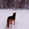 Hihnassa Anuska osaa olla kuin vanha tekijä! Ei vedä eikä kisko, kulkee yleensä kuin nakutettuna oikealla puolella vierellä, välillä vilkaisee kuin kysyäkseen, onko tässä hyvä? Ihan alkuun ehkä viikon verran tosin ulkona käyminen oli yhtä kaaosta kaikille, tuolloin kiskoi aivan paniikissa ja peloissaan pitkin poikin. Silloin ajateltiin, että mitä on tullut tehtyä, tuleeko tästä koskaan yhtään mitään! Tuolloin ei tosiaan olisi tullut mieleenkään jättää yhtään kolmesta hihnasta pois! Varmaa on, että jos olisi silloin karkuun päässyt, ei olisi välttämättä löytynyt...