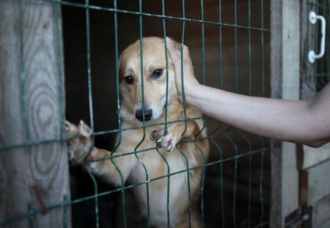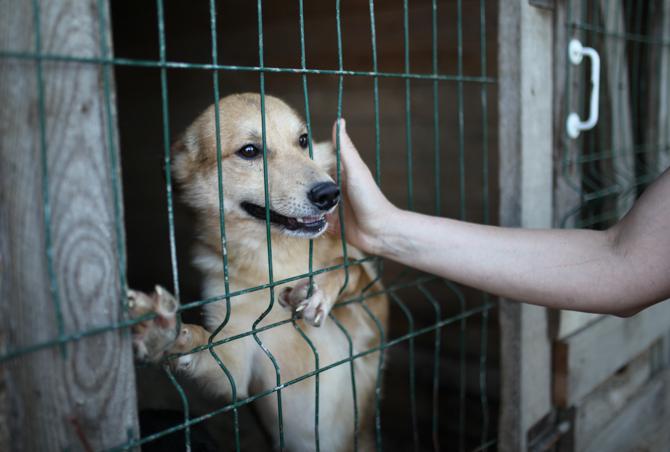 Emme voi olla huomaamatta ruskeaa, ylös alas pomppivaa superpalloa aitauksessa numero 6. Kierrämme aitauksia järjestyksessä koiria tervehtimässä ja saamme täällä ehkä kaikkien innostuneimman vastaanoton.