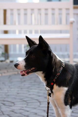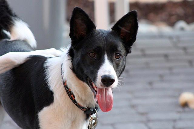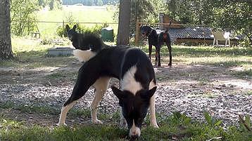 Kauniin mustavalkoinen Aura vaatii omistajiltaan lempeää, mutta jämäkkää otetta, koska ujosta tytöstä on hoitopaikassa kuoriutunut normaali energinen nuori koira.