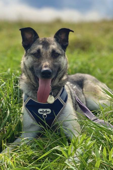 Terveisiä Benjaminilta! Benjamin pääsee toisinaan vapaaehtoisten kanssa kävelylle mutta tilanteet ovat sille yhä melko jännittäviä.