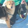 Hoitopaikan isompia koiria Bonja vielä jännittää, mutta koirat oleskelevat jo samoissa tiloissa. Bonja ei kauheasti ota muihin kontaktia, mutta murisee jos joku menee lähelle sen ruoka-astiaa.