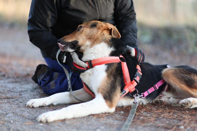 Bono on kaunis koira. Tapasimme sen lokakuun lopussa ja aitaukseen päästyämme kiinnittyi katseemme heti tuohon kauniiseen ja rauhalliseen poikaan. Siellä se ihmeissään katseli meitä ja mielessämme lupasimme etsiä sille kodin. Hetken tutustumisen jälkeen lähdimme yhdessä Bonon kanssa hihnakävelylle, joka luonnistuikin pojalta kuin itsestään. Tottuneesti se käveli reippaasti eteenpäin eikä vaikuttanut säikkyvän mitään. Pian kuitenkin kävi ilmi, että autoista tämä poika ei pidä; autojen ajaessa ohi jähmettyi Bono ensin täysin paikoilleen ja hyökki sitten niiden perään. Vilkas kaupunki ei täten olekaan Bonolle sopiva paikka, vaikka positiivisen vahvistamisen ja lempeän koulutuksen avulla Bonolla onkin kaikki mahdollisuudet tottua autoihin.