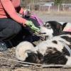 Ystävällisen oloinen Buba pyöri ympärillämme muiden seassa, mutta lähti oitis karkuun, kun yritimme lähestyä sitä. Hetken leikittyämme sen kanssa hippasia, saimme sen vihdoin valjaisiin ja mukaamme tarhan seinien ulkopuolelle. Valjaat taisivat olla uusi tuttavuus ja hiukan saimme Bubaa vetää perässä, jotta saimme sen liikkeelle. Pienin pyrähdyksin pääsimme eteenpäin läheiselle pellolle asti ja yllätykseksemme Bubasta kuoriutuikin varsin reipas koira. Sen katse ihan kirkastui, kun se tajusi, että ulkoilu kanssamme ei ollutkaan mikään kamala juttu. Rapsutukset ja taskujen namit olivat varmasti suuri plussa tässä kohtaa. Pusikoita tutkiessaan sen turkkiin tarttui takiaisia, joita emme ihan kaikkea saaneet pois, ja niin Buba jäi takiaistensa kanssa odottelemaan seuraavaa seikkailuaan. Olisipa se pian.