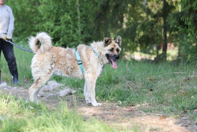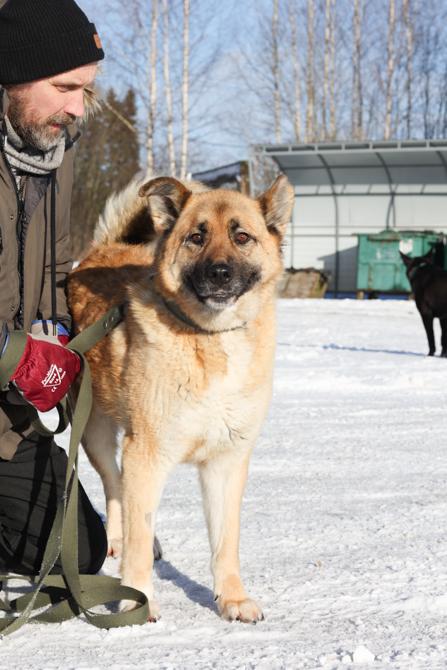 Suloinen Bucha vaikuttaa sosiaaliselta ja reippaalta tytöltä, joka olisi ehdottoman valmis jättämään meluisan ja ahtaan tarhan vihdoin taakseen. Tavatessamme helmikuussa suhtautui se meihin vieraisiin avoimen uteliaasti sukupuoleen katsomatta. Hihnassa se kulki kanssamme nätisti ja vaikutti suhtautuvan myös muihin koiriin ystävällisesti niin aitauksessa kuin kävelylläkin. Minkäänlaista rähjäämistä emme sen osalta todistaneet, mutta Elenan kertoman mukaan sillä on ollut muiden narttujen kanssa toisinaan pientä eripuraa. Se voisi mahdollisesti pärjätä myös ainoana koirana, mutta uudessa kodissa voisi hyvin odottaa kiva urospuolinen koirakaveri, johon tukeutua ja josta ottaa mallia. Tärkeintä kuitenkin olisi, että uudessa kodissa odottaisi kiva ihminen, jolla on aikaa ja halua kärsivällisesti opettaa Buchaa kotikoiran tavoille.