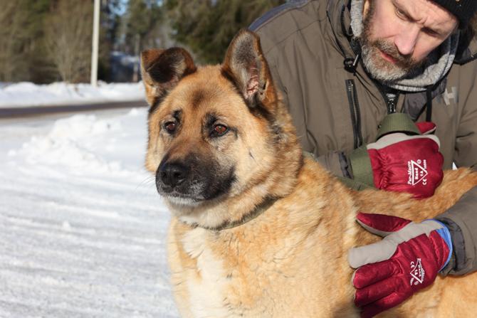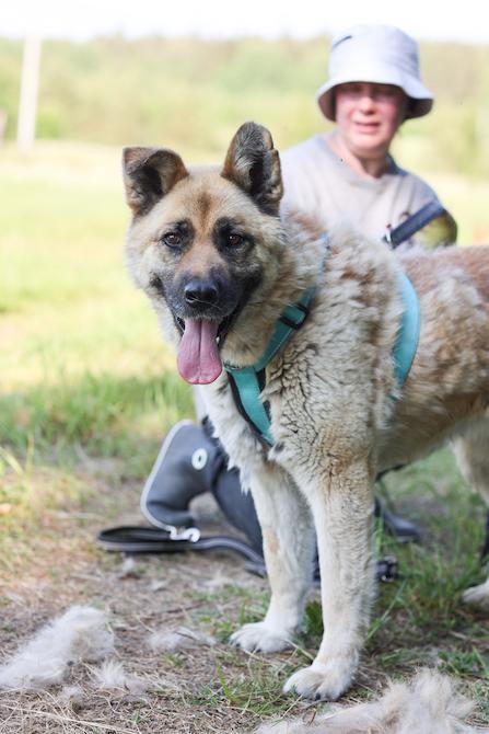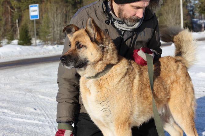 Kävelyllä Bucha käyttäytyi mallikkaasti ja sai samalla pienen harjauksen, sillä irtoavaa talvikarvaa on paljon.