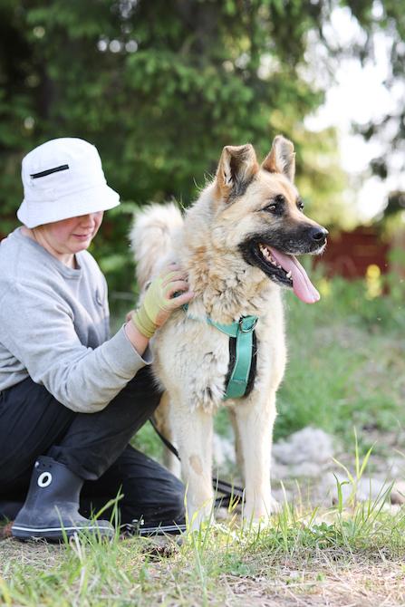 Bucha on arviolta noin 6–7 ikävuoden paikkeilla. Muutama niistä on kulunut tarhalla ahdasta aitausta koristamassa, mutta sen aiemmasta historiasta emme tiedä mitään. Se on niin ihmisrakas ja avoin, että kenties se on edes hetken elämästään saanut elää myös ihmisten joukossa, osana perhettä. Kotioloista sillä nimittäin vaikuttaisi myös olevan jonkinlaista kokemusta. Kun muut koirat purivat sitä, pääsi se Elenan luo parantelemaan haavojaan. Kerrostalon viidennessä kerroksessa se osoitti taitavansa muun muassa sisäsiisteyden alkeet ja säästelevänsä komeaa ääntänsä tärkeämpiä asioita varten. Ehkä sen tassuissa piilee muitakin taitoja. Vaikka se pärjäsikin toipilaana kerrostalossa hienosti, on sillä takanaan monta vuotta kaduilla ja tarhalla elämistä. Kotiutumiseen tuleekin varata rutkasti aikaa ja kärsivällisyyttä. Ja ihan varmuuden vuoksi myös niitä pissa-alustoja!