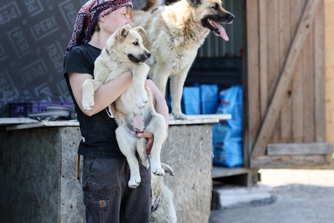 Bucha-polo pärjää tarhalla huonosti. Se on joutunut muiden isojen narttujen silmätikuksi ja uskaltaa tuskin liikkua turvapaikastaan kopin katolta.