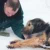 Bucky eli erään teollisuusrakennuksen pihalla samassa laumassa useamman muun koiran kanssa. Tähän joukkoon kuului myös mm. Murray, joka etsii kotia sivuillamme. Tehtaan pomon vaihduttua koirille tuli häätö. Ne oli joko tapettava tai vietävä pois alueelta. Onneksi Snezhanna kuuli koirista ja haki ne turvaan. Bucky on asunut tarhalla viime syksystä lähtien ja alkanut hiljalleen luottamaan ihmisiin. Se on saanut harjoitusta hihnakävelyssä ja käveleekin nyt oikein mallikkaasti kiitos ahkerien vapaaehtoisten. Välillä uudet asiat jännittävät, mutta Bucky myös nauttii ulkoiluhetkistä ja ihmisistä ympärillään.
