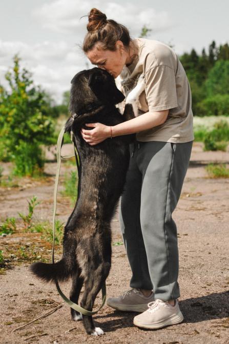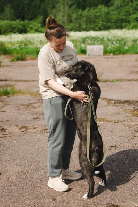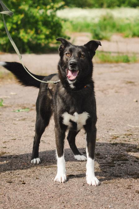 Vuoden 2024 joulukuussa sterilointiohjelman kautta Pietarista viipurilaiselle koiratarhalle päätynyt reipas ja sosiaalinen tyttö on todennäköisesti entinen kotikoira. Alun perin Burja ja sen nykyinen aitauskaveri Roza löytyivät ulkosalta harhailemassa.