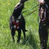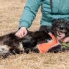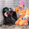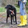 Yhteiskävely vapaaehtoisten ja muiden koirien parissa sujui hienosti. Vaikka kokemus oli varmasti jännittävä, on tarhalla asuvalle koiralle tärkeää päästä harjoittelemaan hihnassa kävelyä ja seurustelua ihmisten kanssa.