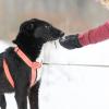Casper on hiukan pönäköitynyt ja sillä olisi muutama kilo karistettavana. Enimmäkseen se välttelee ihmisen kosketusta, mutta kutittavat partahaivenet voi tuntea kasvoilla sillä Casper on kuitenkin hyvin utelias vieraiden suhteen. Se antaa kiltisti pukea varusteet vaikka sitä jännittää. Ulkona se kävelee omin avuin ja lumesta löytyy paljon mielenkiintoista haisteltavaa. Casper ei kovin kauas uskalla kävellä ja pian sille iskeekin koti-ikävä. Omaan tuttuun aitauskeen olisi päästävä takaisin. Päätämme että ulkoiluharjoituksia on parempi jatkaa reippaan aitauskaverin kanssa, josta Casper saisi rohkaisevan tukikoiran itselleen. Ensi kertaan siis.