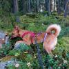 Dasha on kulkenut alusta asti remmissä hyvin ja on kovin kiinnostunut kaikesta ympärillään. Vastaan on tullut vain muutama selkeästi jännittävä asia (ulko-ovesta tuleminen, autoon nouseminen) ja niistä on opittu selviytymään namien avulla. Dasha onkin myös hyvin oppivainen ja esimerkiksi pyyntö istua ennen namin saamista vaati vain muutamia harjoituskertoja.
