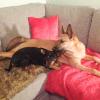 "Dodo on nyt ollut kotihoidossa kolmisen viikkoa maaseudun rauhassa. Ensimmäiset päivät oli jännittäviä ja väisti minua aina kun kävelin ohi tai kohti, eikä tullut ovista sisään ennen kuin olin pois näkyvistä. Nykyään juostaan ovista sisään jo kuin vanha tekijä ja leimaantui minuun nopeasti ja hakeutuu lähelle siliteltäväksi. Dodo tulee loistavasti juttuun pikkukoirani kanssa, syövät päät vierekkäin luita ja leikkivät vetolelulla yhdessä eikä ole koskaan ollut mitään ärähtelyjä suuntaan eikä toiseen.