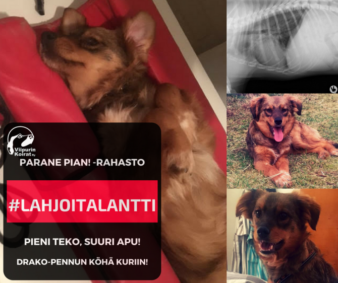 Auttaisitko Drakon kaltaisia pikaista hoitoa tarvitsevia koirapotilaita lahjoittamalla lantin Parane pian! -rahastoon? Haasta myös ystäväsi mukaan #lahjoitalantti-tempaukseen Viipurin kodittomien koirien hyvinvoinnin hyväksi!
