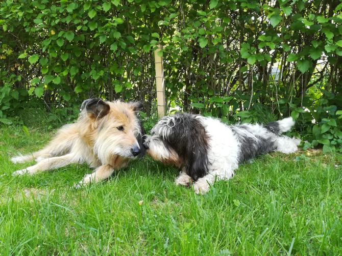 Hoitopaikassa asuu suunnilleen Epun ikäinen narttukoira, jonka kanssa yhteiselo sujuu hyvin. Myöskään kissojen kanssa ei ole ongelmia.