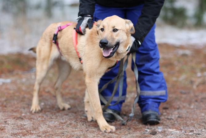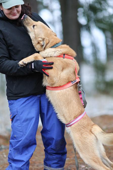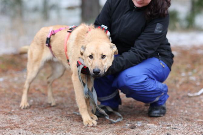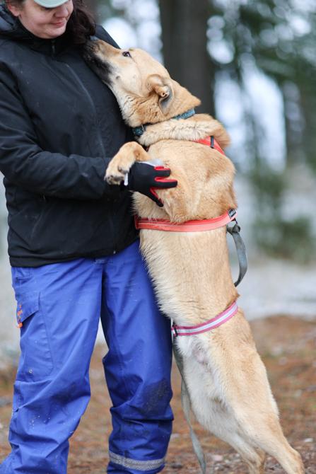 Eemil pääsi kanssamme marraskuun puolivälissä hihnalenkille. Poika oli täynnä intoa ja sillä oli melkoiset menohalut. Ymmärtäähän sen, kun nuori ja energinen koira on laitettu pieneen aitaukseen, lenkille ei pääse ja kaikki päivät kuluvat ahtaassa kopissa. Vähemmästäkin turhautuu. Kun sitten vihdoin pääsee liikkumaan, haistelemaan ja tapaamaan ihmisiä, nousee kierrokset korkealle. Eemil ei välttämättä ole kovin tottunut hihnakävelijä, mutta ihmisiä tämä poika rakastaa! Epävarmuudesta tai arkuudesta ei ole tietoakaan, kun Eemil yrittää vähän väliä päästä suikkaamaan suukkoja kasvoille.