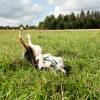 Vakavamielinen Eera on piristynyt, kun tapaamme elokuun lopussa uudestaan. Se lähtee riemuissaan lenkille ja osaa kulkea hihnassa. Kuljemme pois tarhan alueelta eikä Eera paljon taakseen katsele. Reipas tassutus käy kohti läheistä peltoa ohi ajavista autoista välittämättä. Eera menee oitis piehtaroimaan ruohikolle ja muuttuu hetkessä leikkisäksi pennuksi, joka syöksähtelee onnessaan ihmisen luota toiselle. Onhan nyt tälle ihastuttavalle pikkutytölle jostain löydyttävä koti, onhan?