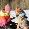 Elia pääsi kanssamme ulkoilemaan ja samalla ruokimme riutuneessa kunnossa olevan pojan. Se suhtautui iloisesti meihin eikä pelännyt mukana ollutta miestäkään. Miltä tuntuikaan päästä monen kuukauden jälkeen vihdoin liikkumaan, haistelemaan kinosten tuoksuja, tapaamaan muita koiria ja ihmisiä. Poikaparka palautettiin surkein mielin aitaukseensa ja koirien koppi vuorattiin koppikuivikkeella.