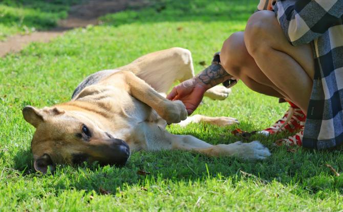 Elia kävelee lähellä ihmistä. Niin lähellä, että siihen on vähällä kompastua joka toisella askeleella. Poika hakee paljon turvaa ihmisestä ja välillä nostaa etutassunsa vasten rintaa. Elia on hyvin laihassa kunnossa ja sen kynnet ovat kasvaneet valtavan pitkiksi. Harmittelemme ettei kynsisaksia sattunut juuri tälle reissulle mukaan. Ruokaa kuitenkin tuli ja annamme nälkäiselle pojalle ruokaa.