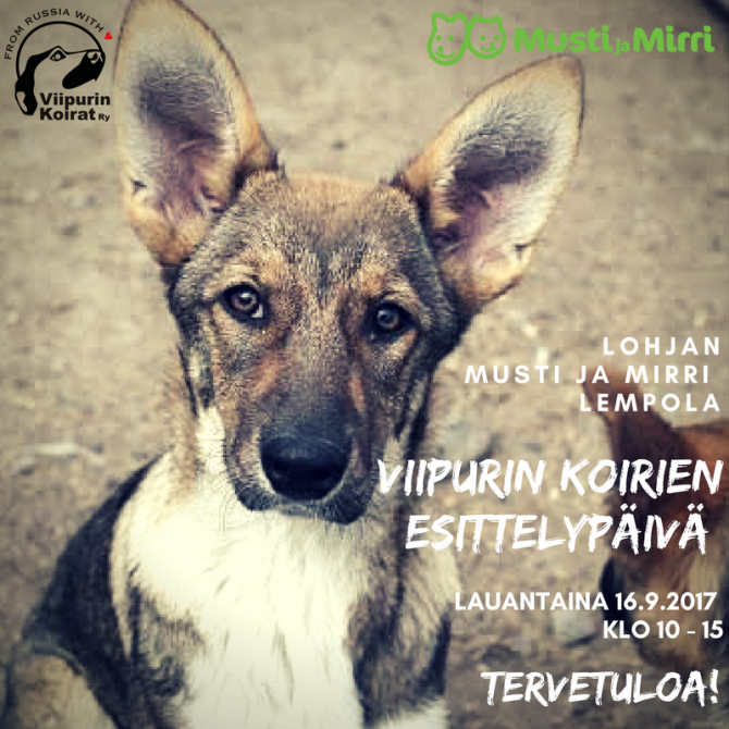 Musti ja Mirri Lempolassa (Lohjanharjuntie 758, Lohja) 16.9. klo 10-15 on mahdollista tutustua yhdistyksen toimintaan ja tukea kodittomien koirien hyväksi tehtävää työtä lahjoittamalla sekä tekemällä ostoksia. Myynnissä on kannatustuotteita ja eettisiä lahjakortteja sekä paljon muuta. Arpajaisissa jokainen arpa voittaa ja tarjolla on kahvia sekä pientä purtavaa.