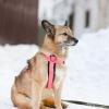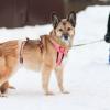 Haiku ei ole ollut koskaan hihnassa ja niinpä päätimme, että nyt on aika kokeilla mitä se varusteista ja hihnasta sanoo. Tämä siksikin, että poikaa saattaa pian odottaa hoitopaikka Suomessa. Haiku antoi nätisti ottaa itsensä kiinni ja varusteiden pukeminen oli sille kohtalaisen helppoa. Sitten koitti hetki, kun aitauksen ovi avautui ja Haiku laskettiin tarhan porttien ulkopuolelle katselemaan lumisia maisemia. Haiku oli melkoisen huuli pyöreänä. Se kykeni kuitenkin koko ajan syömään nameja vaikka hihnan kiristyminen aiheuttikin joka kerta pienen ahdistuksen ja kiepsahduksen hangessa. Pariin otteeseen möngittiin lumikasassa ja hetken aikaa istuskeltiin ja katseltiin ympärille. Tämä lyhyt ja jännittävä kokemus sai Haikun pian vetämään takaisin omaan, tuttuun aitaukseensa minne se pian palautettiin ja sinne Haiku jäi iloisena heiluttamaan häntäänsä.
