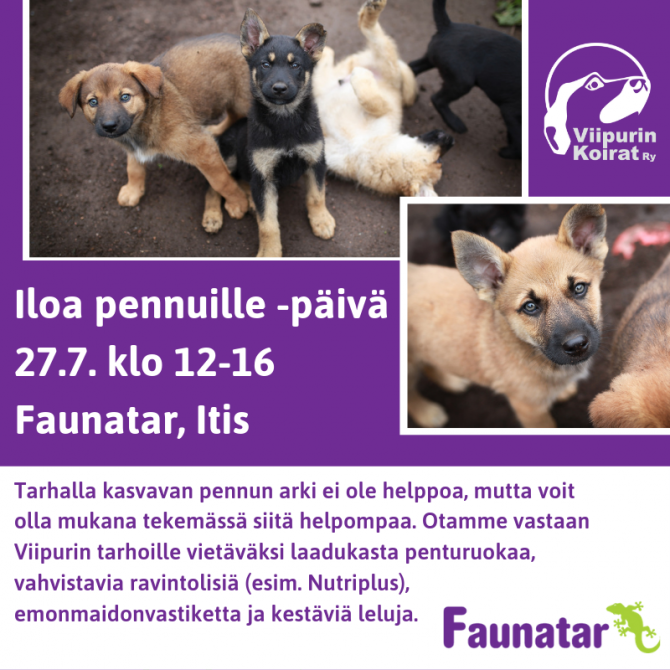 Iloa pennuille -päivä 27.7. Faunatar Itiksessä