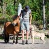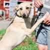 Jerry pääsi kanssamme hihnakävelylle. Alkuun se oli vähän jännittävää, mutta kyllä se siitä sitten lähti. Ei Jerry nyt mikään maailman reippain koira ollut vielä, mutta se halusi omaehtoisesti edetä eteenpäin ja tutkia ympäristöä. Erityisen ilahtunut se oli törmätessään koiraseuraan tarhan edustalla vaikka kyseessä ei ollutkaan oman aitauksen väki. Sopuisa Jerry halusi kaikin tavoin viestittää toisille koirille, että on harmiton ja haluaa olla kaikkien kaveri.