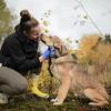 Vaikka Jessicaa alkuun vähän ujostuttaakin, rohkaistuu se nopeasti ja tulee tekemään lähempää tuttavuutta. Jessica on päässyt aloittamaan myös hihnakävelyharjoitukset tarhalla.