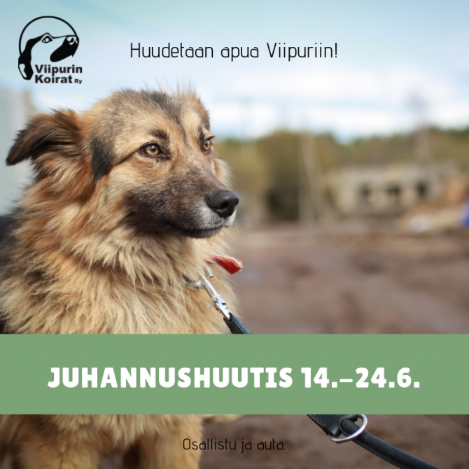 Kaikki huutokaupasta saadut tuotot ohjataan Viipurin Koirat ry:n eläinsuojelutyöhön.