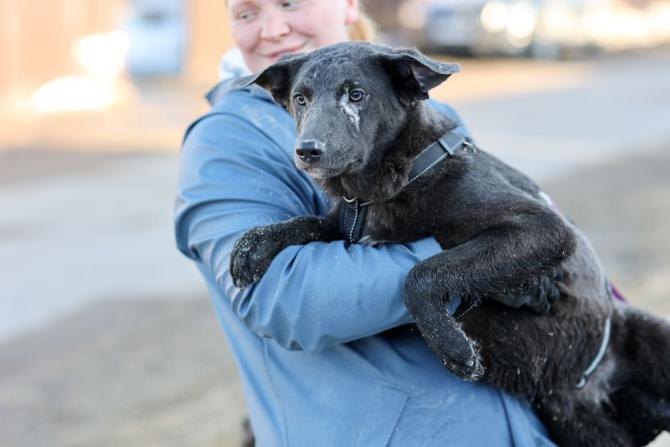 Kaino-pentu on nyt pari viikkoa ollut Suomessa kotihoidossa. Alkuun kosketukselle arasta pennusta on kuoriutunut varsinainen pusutyttö hoitoäiskän kanssa.