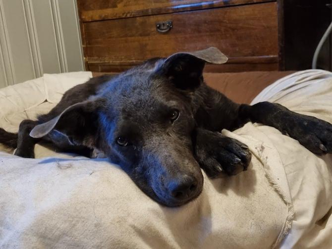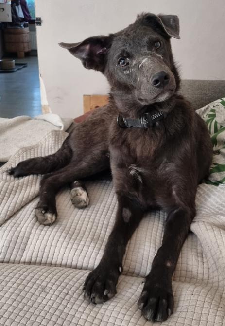 Kaino pääsi hoitopaikkaan Suomeen ja asuu nyt maaseudulla useamman koiran kaverina.