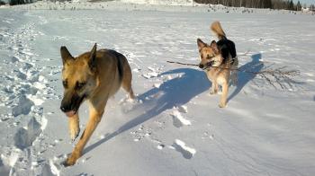 Pikku-Hukka selvisi onneksi pahimmista pakkasista. Pikkuinen on kasvanut ja reipastunut, ja se on nyt mutkattoman iloinen ja tasapainoisen oloinen pentu.