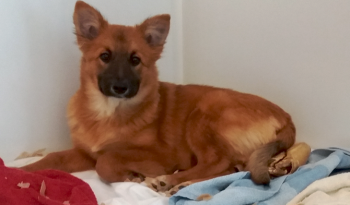 Karat-poika on sujahtanut mainiosti kotikoiran elämään ja odottaa omaa kotia hoitopaikassaan Helsingissä.