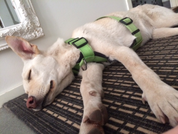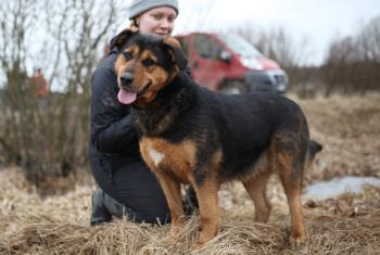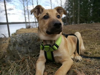 Robin-poika on selvinnyt matkan jännityksestä ja aloittanut kotikoiran elämän harjoittelun hoitopaikassa Jyväskylässä.