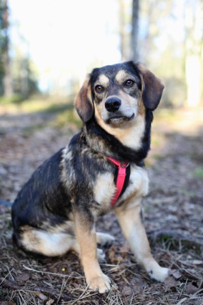 Pieni susihukkanen varttui aikuiseksi koiraksi ja etsii edelleen omaa kotia Hämeenkyrössä.