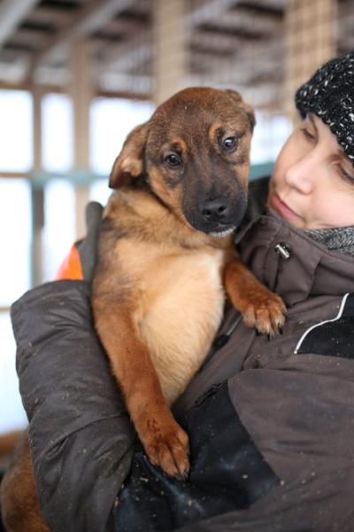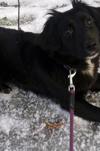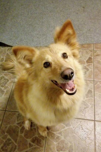 Fani innostuu kovasti uusista ihmiskavereista: se tassuttaa perässä häntä heiluen ja haluaa syliin heti vain kun se on mahdollista!